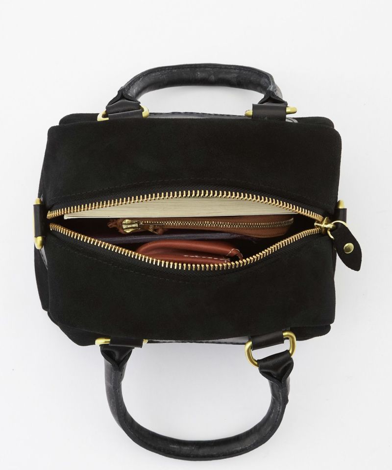 トレンドのミニバッグはマチを広めにしたことで、財布や350mlペットボトル、ポーチなどをしっかり収納出来ます。取り外しできるショルダーストラップ付きで2WAYデザイン。Dリングや底鋲は真鍮製で、贅沢な仕様のバッグです。