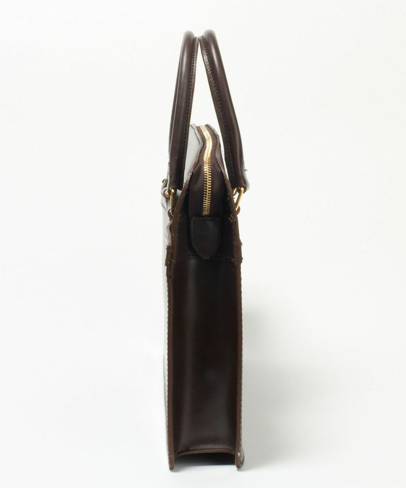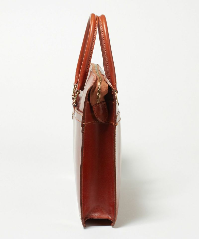 ブライドルレザーの堅牢性・耐久性を活かし、レザーの厚みを薄くすることで、レザーバッグとは思えない軽さを実現しました。シンプルな見た目ながらも、アウトサイドポケットや、本体のトップ部に配したジップの両エンドにマグネットボタンをあしらうなど、使いやすさにも配慮されています。