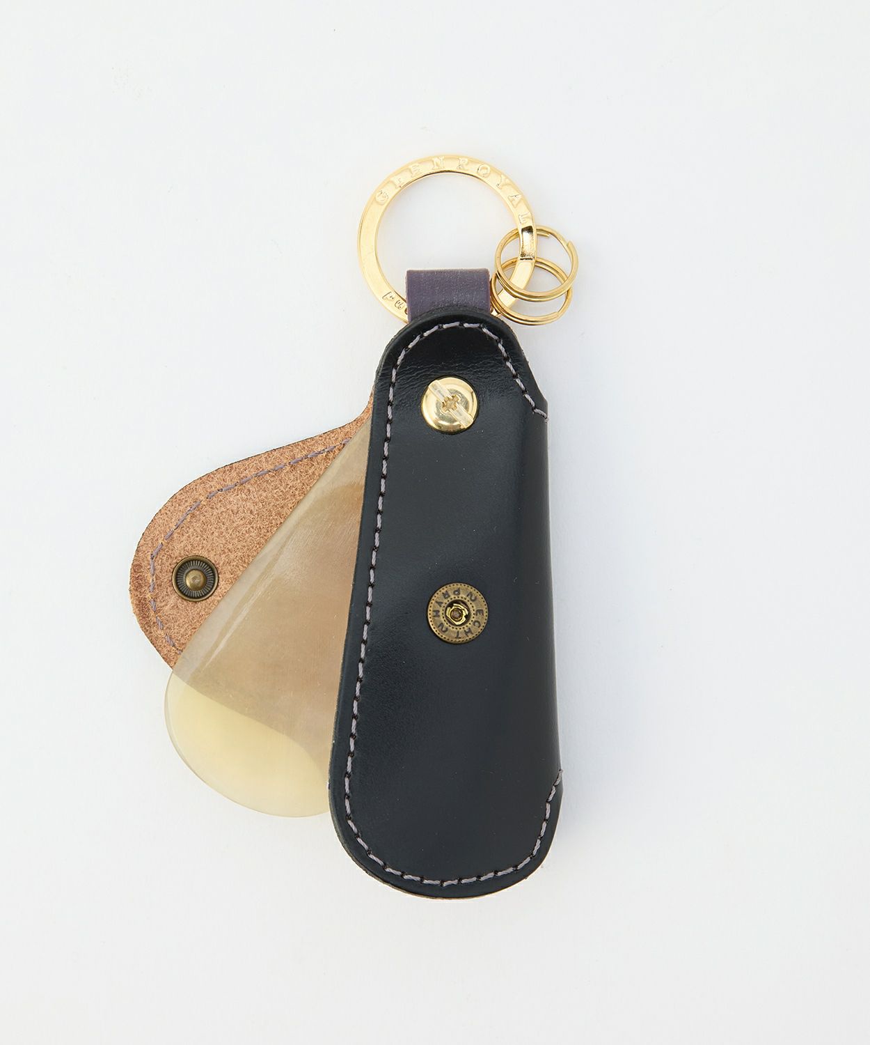 外出先でサッと使うだけで、さり気なく品のある大人の立ち振る舞いを演出できます。そしてグレンロイヤルのシューホーンはコンパクトなサイズも魅力的で、気軽に持ち歩く事が可能です。ホーンを覆う伝統のブライドルレザーに金のスナップボタンの組み合わせという、エレガンスの宿る贅沢で深みのある仕上がり。日々変わっていく革の表情も楽しめる逸品なのです。さらに、ホーン本体は水牛の角を用いることで、他にはない上質で温かみのある雰囲気も生みだしています。