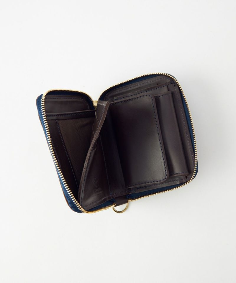 クレジットカードほどのサイズ感で、財布を開くと内側にはカード収納やマチ付きのコインケース、さらには仕切り付きの札入れがあるため、見た目以上に充実した収納力を備えています。背面外側にもカードポケットがあることで使用頻度が高いICカードなどを収納でき、財布を開かなくてもカードの出し入れが可能です。ウォレットコードやタッセル、キーホルダーなどを付けることができるDリングを搭載しているので、独自のアレンジもお勧めです。