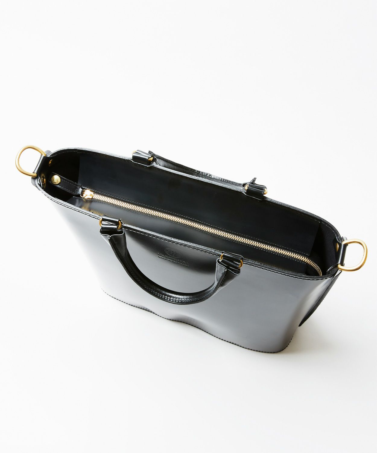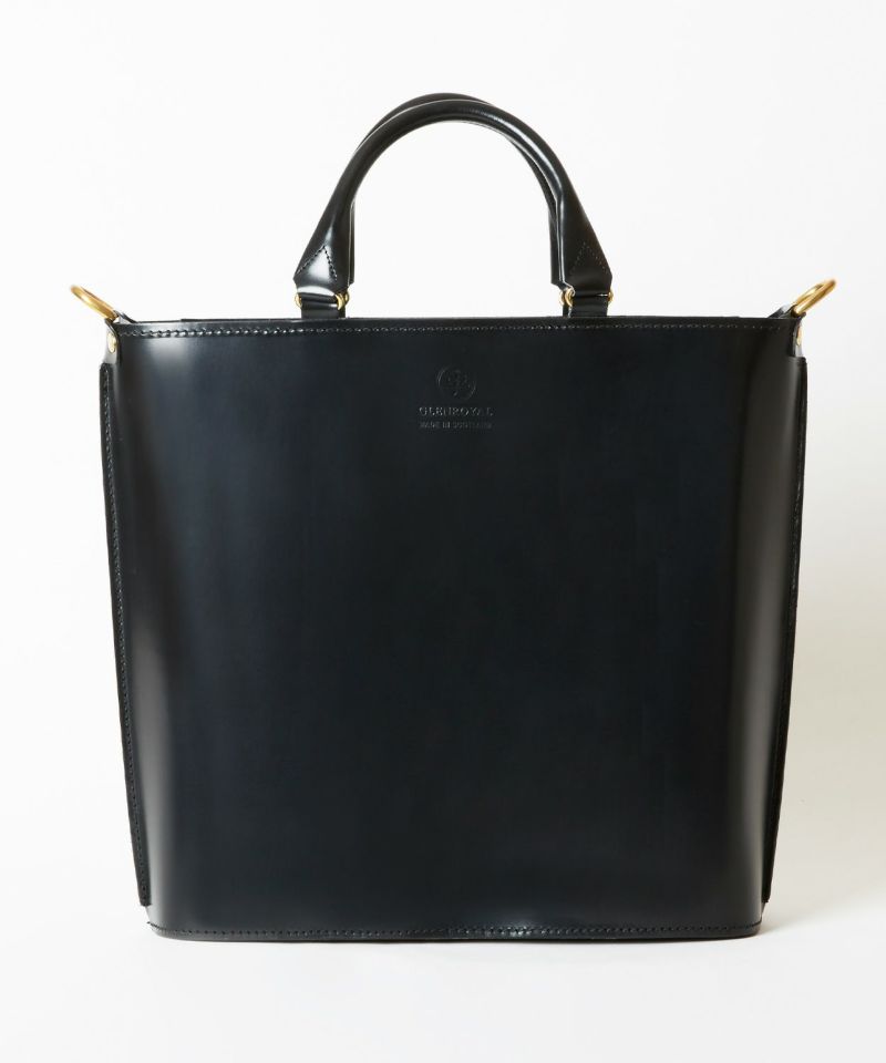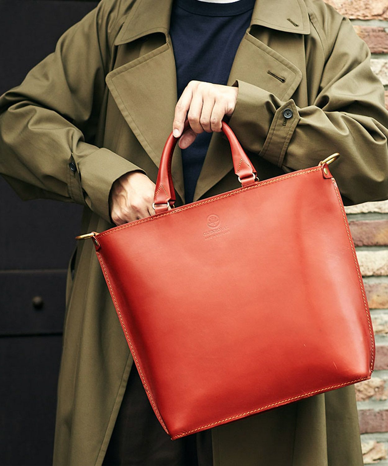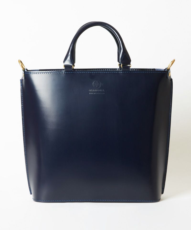 グレンロイヤルのアイコンでもあるブライドルレザーをたっぷりと使い、高級感のある見た目ながら軽量でオンオフ問わず日常的に使いやすいデザイン。パッド付きの取り外しが容易なショルダーストラップが備わっており、自転車での移動など両手をフリーにしたい際には肩掛けも可能です。金具類には味のあるABBEY ENGLAND(アビー イングランド)のアンティークブラスを使用。パッと置いた際に自立できるマチの確保や、トップに中身が飛び出さないようにジップ付きの弁を配置するなど、見た目はシンプルながら細部にまでこだわりが詰まったアイテムに仕上がっています。
