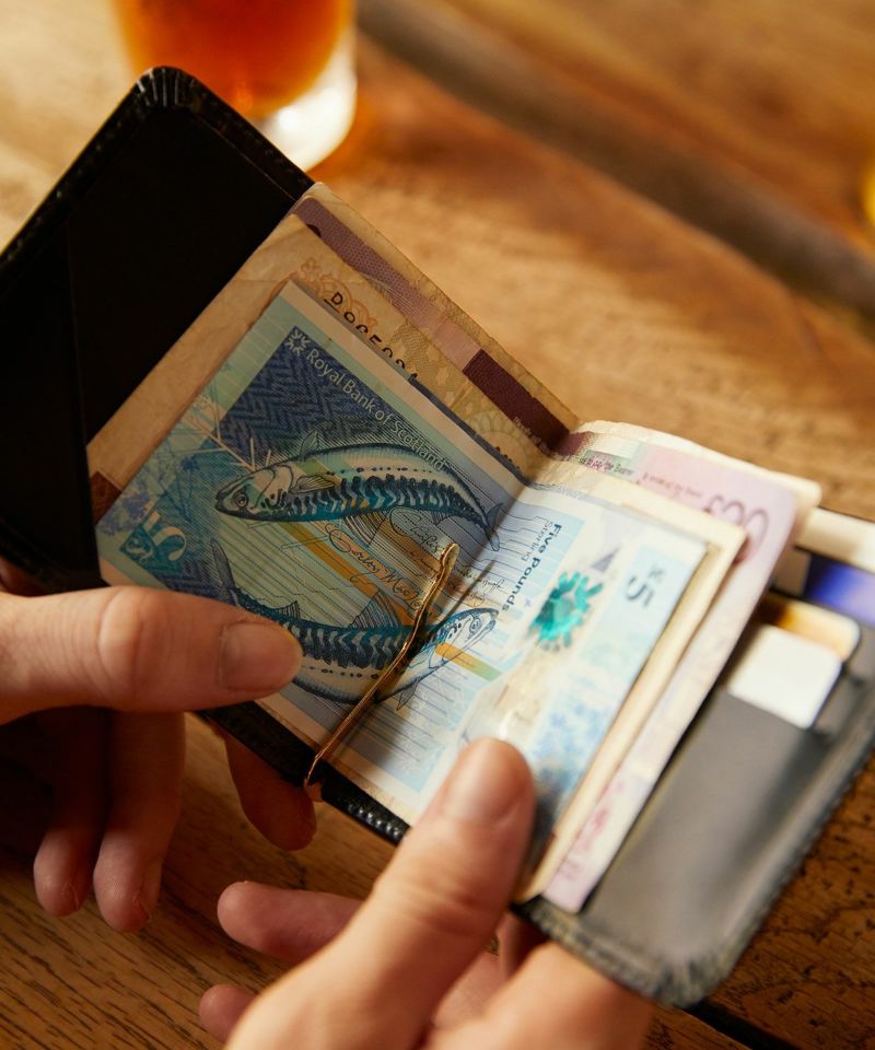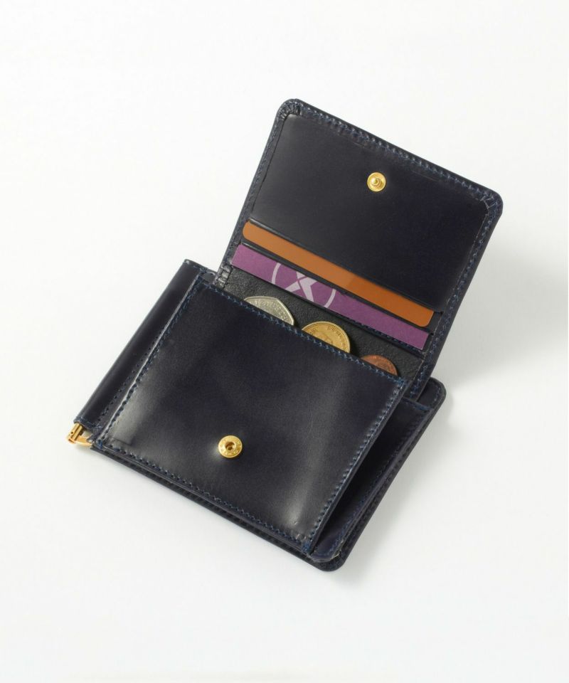 ミニマルなルックスと使い勝手の良さを兼ね備えるマネークリップは、グレンロイヤルの数あるアイテムのなかでも屈指のロングセラーモデル。約1.5cmという薄さを実現しながら、お札、コイン、カード全てを収納可能。薄マチの為、ポケットに入れても洋服のシルエットを崩さずに持ち運びが可能なオン·オフともに活躍してくれます。