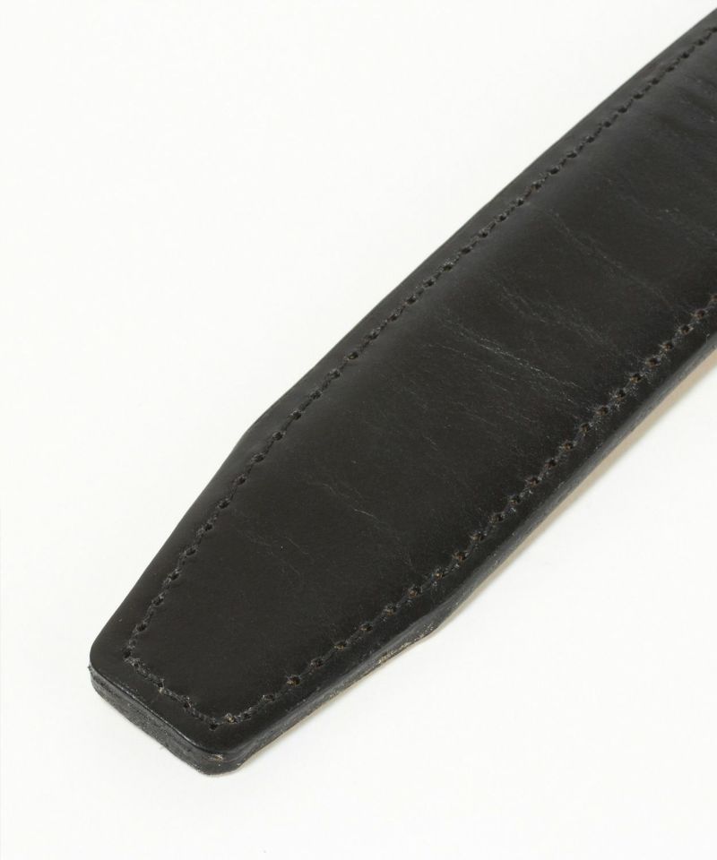 余計な装飾がないルックスに加え、2.9cmと太すぎず・細すぎず絶妙なベルト幅。さらに、バックルにブラスやゴールドではなくシルバーカラーを選ぶことで、ドレススタイルへの相性を高めました。ドレスパンツのウエスト部にちょうどよく収まり、ビジネスの装いに程よい落ち着きをもたらします。