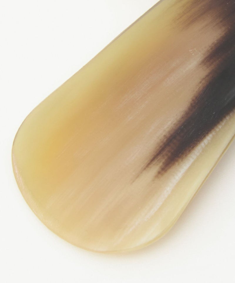 水牛の角で出来ているシューホーンはイギリスが発祥の地。職人の手によってひとつひとつ削って磨かれるシューホーンは、ひとつとして同じ模様のものがなく表面が実に滑らかです。靴とかかとの間にするりと入りストレスなく靴を履くことが出来るので、未だ使ったことのない方はぜひ一度体験いただきたいアイテム。