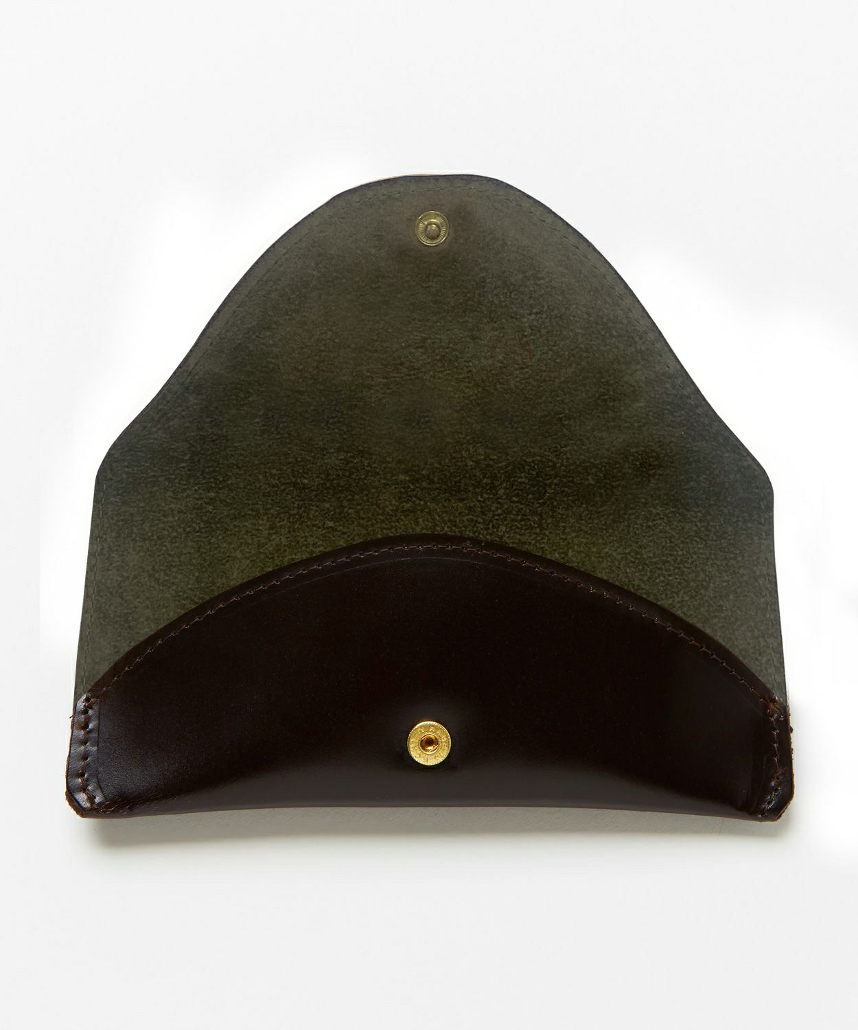 ケースの内側は、レンズを傷つけないようソフトスエード調に。スナップボタンの位置も試作を重ね、ボタンを閉める際の圧力がレンズに干渉しないように配置しています。 レンズの大きいサングラスも入る仕様ながら、見た目は非常にスマートで持ち運びしやすく、バッグの中でかさばりません。カラー展開も豊富なので、メガネやサングラスのデザインに合わせて揃えるのもおすすめ。ブライドルレザー特有の経年変化(エイジング)を楽しみながら長くご愛用いただけます。