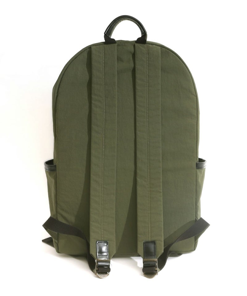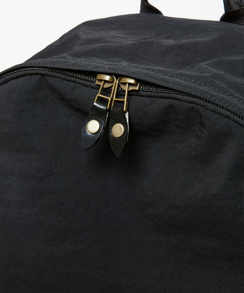 13inch程度のラップトップが入り、幅広いシーンに対応。大きめのサイドポケットの他にファスナー付きフロントポケット1、中にPCが収納できるパッド入り内ポケットが付いています。GLENROYALらしいレザープラーやパイピングで高級感もプラス。軽くて容量も充分なデイパックは飽きの来ない形で様々なコーディネートに合わせやすいところもポイント。ナイロン生地にはアクリルをベースとしたバッグコーティング剤(広塗布用)を塗布し、優れたハリ感と撥水機能を持たせました。ブライドルレザーと撥水ナイロンを組み合わせシーズン問わずお使いいただけるアイテムです。