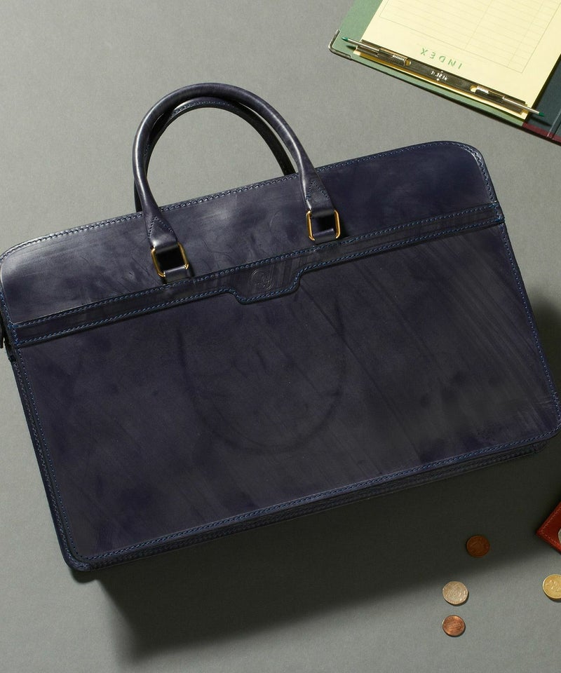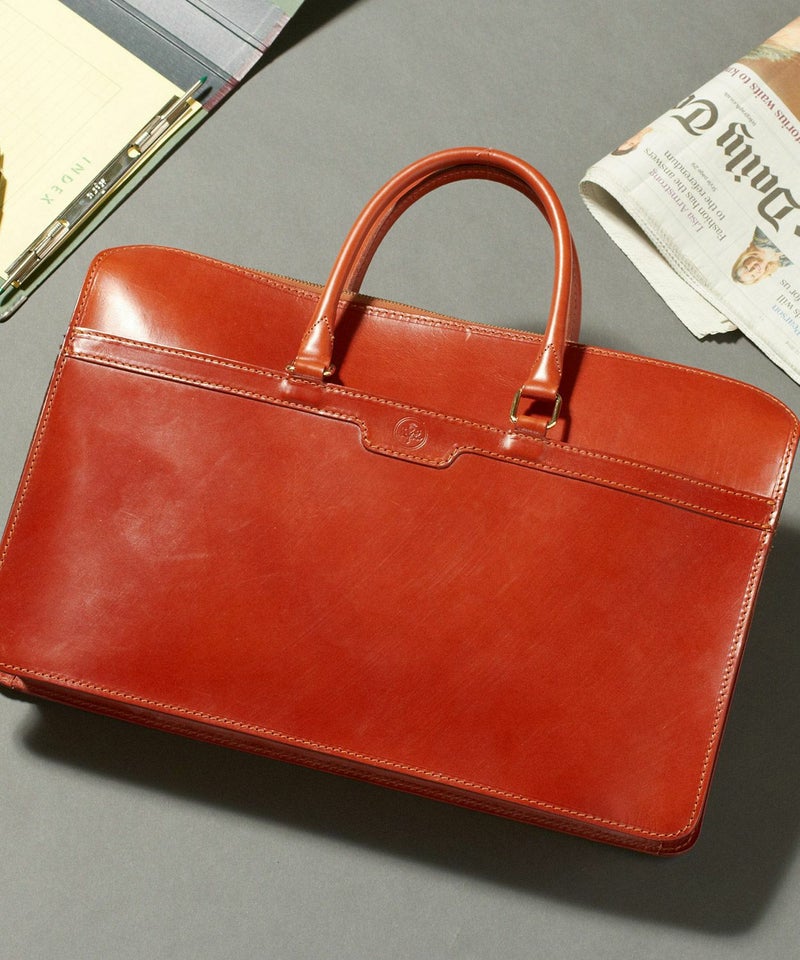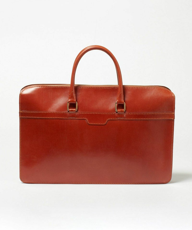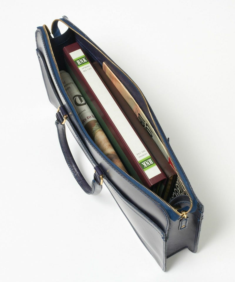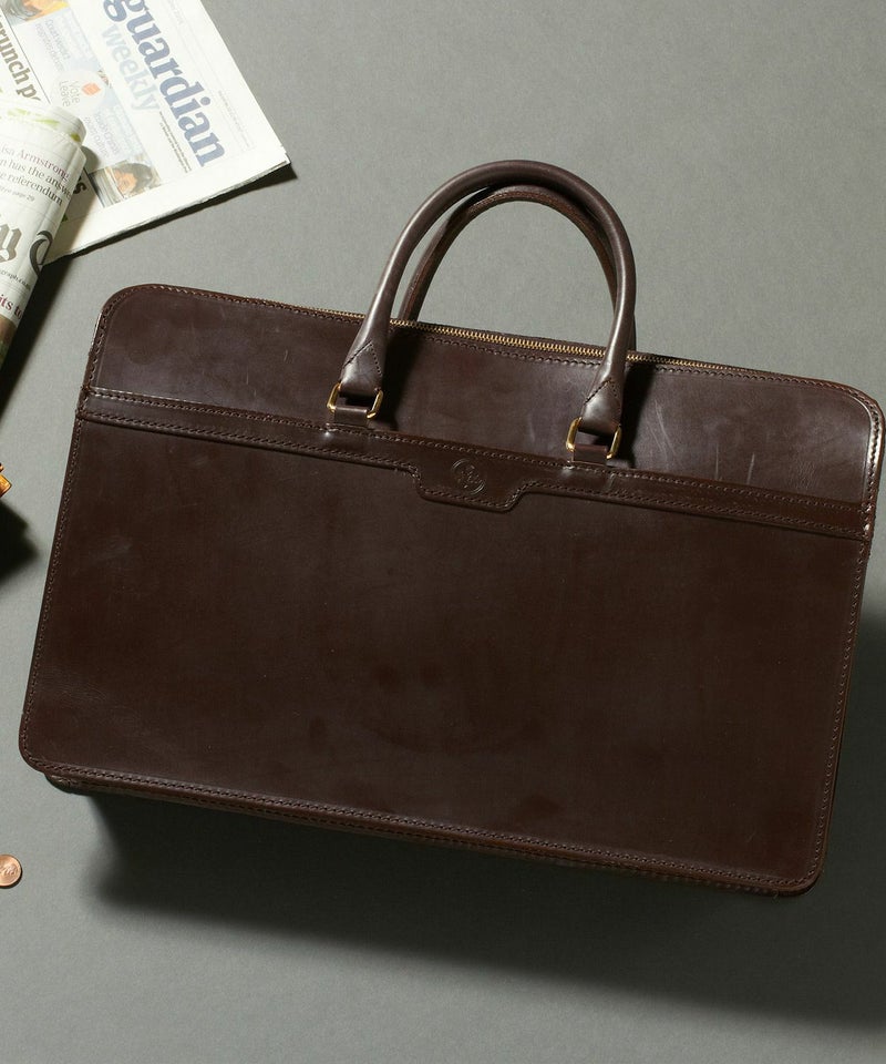 ブライドルレザーの堅牢性・耐久性を活かし、レザーの厚みを薄くすることで、レザーバッグとは思えない軽さを実現しました。シンプルな見た目ながらも、アウトサイドポケットや、本体のトップ部に配したジップの両エンドにマグネットボタンをあしらうなど、使いやすさにも配慮されています。