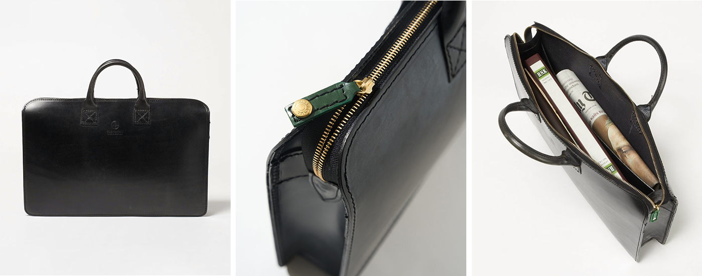 オールブライドルレザーとは思えない軽さを実現しています。見た目の美しさも保たれており、強度の高いブライドルレザーだからこそ副資材を使わずに自立式となっています。スーツスタイルをより洗練してくれる無駄のないミニマルなデザインです。