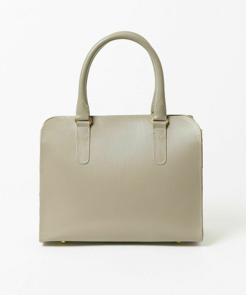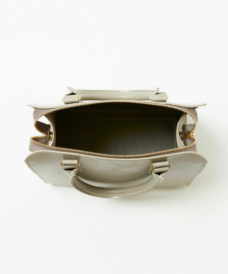 メインコレクションのブリーフバッグのハンドル部分など、グレンロイヤルらしいシンプルで研ぎ澄まされたディテールを女性らしくアップデート。上部の開閉部分はファスナーを使用し、開け閉めし易く開口部が大きく開くため出し入れもスムーズ。また小さくてもマチがしっかりとあるので、お出かけに必要なものは十分入ります。