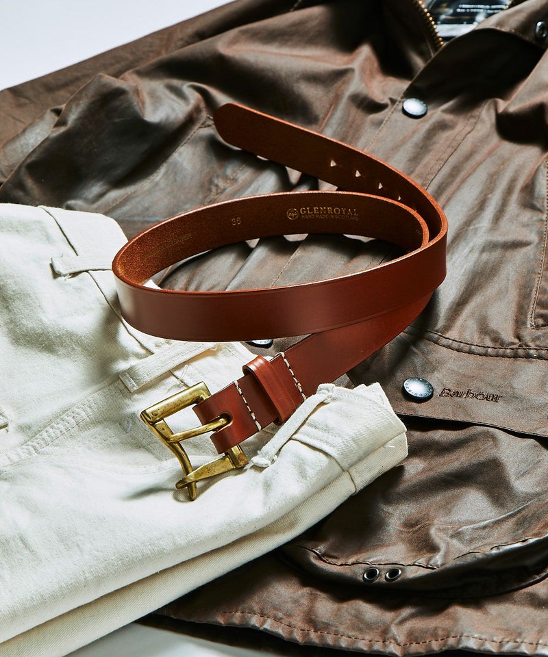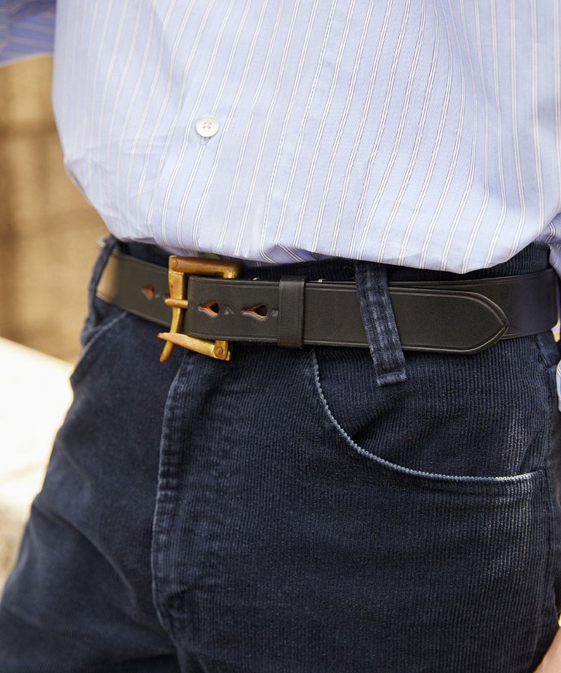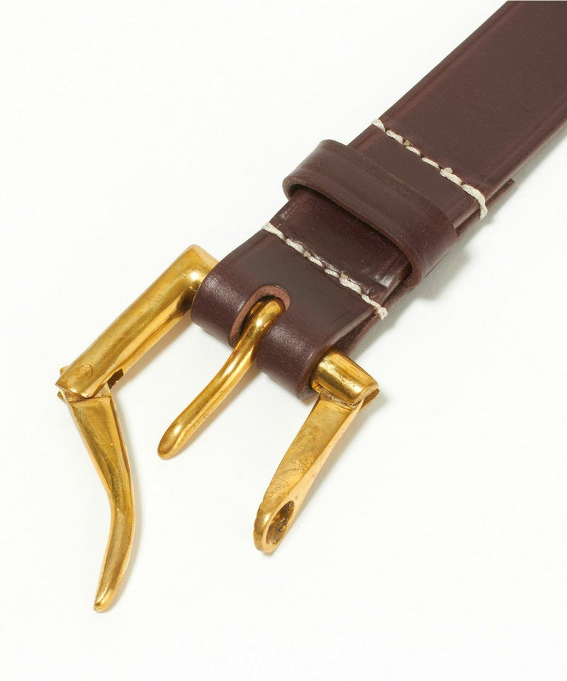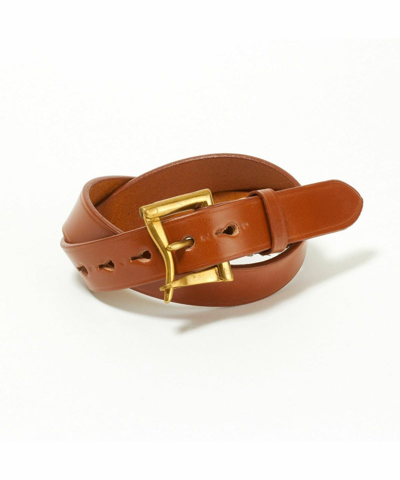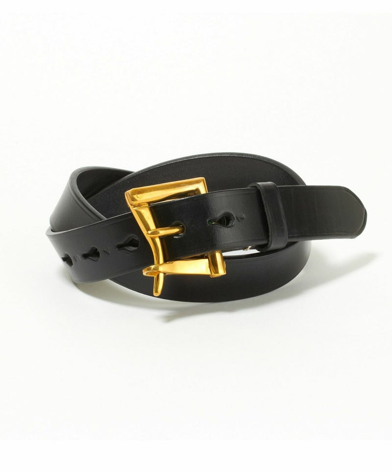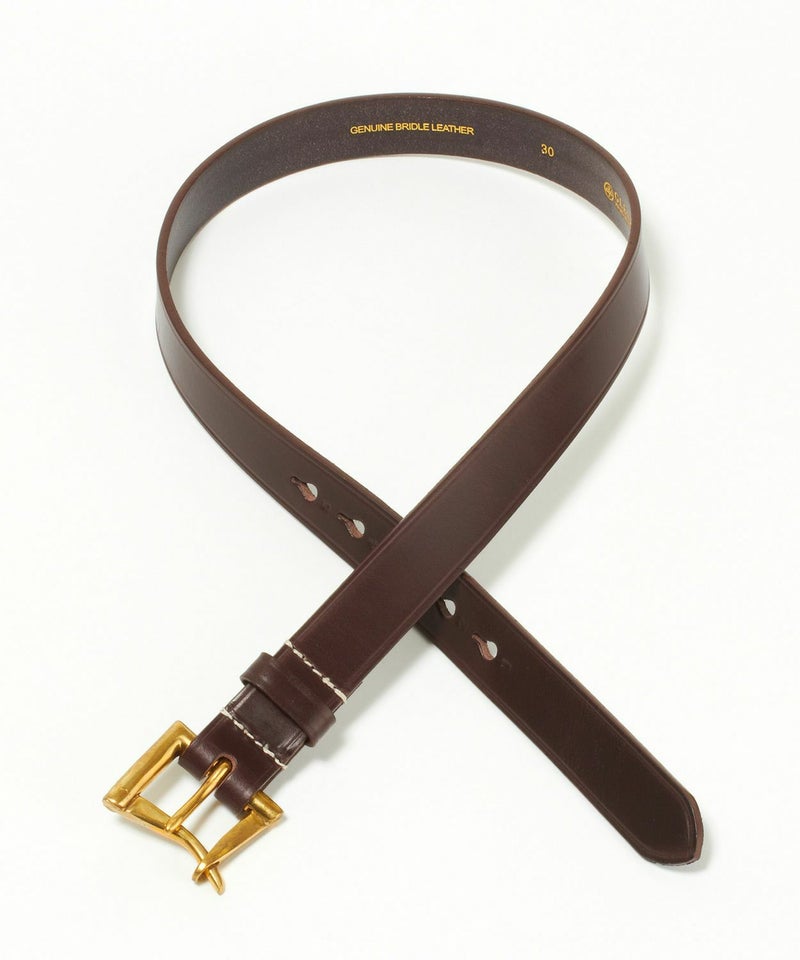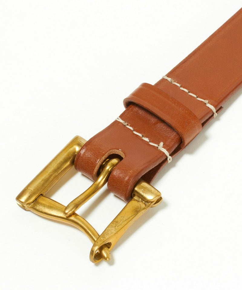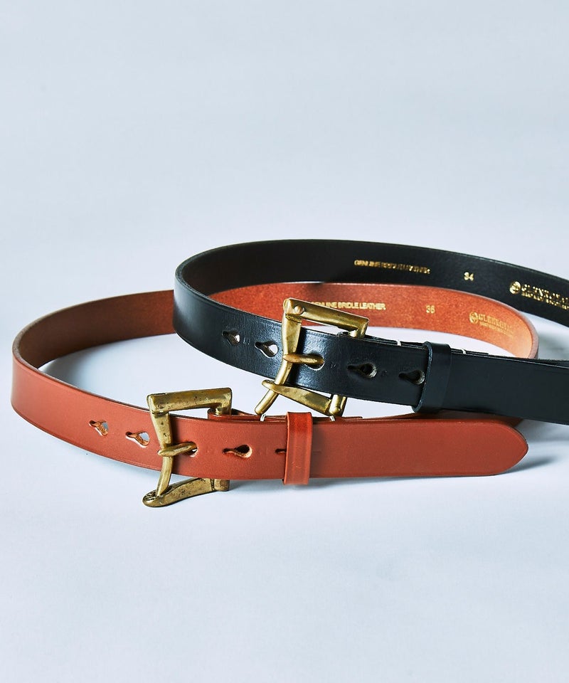 剣先側の穴から順番に刻印された1から5までのナンバーも馬具からインスパイアされたもの。バックルにも馬具で使用される英国製のアンティークブラスを使用し、ブリティッシュカントリーを彷彿させるアイテムに仕上がっています。
