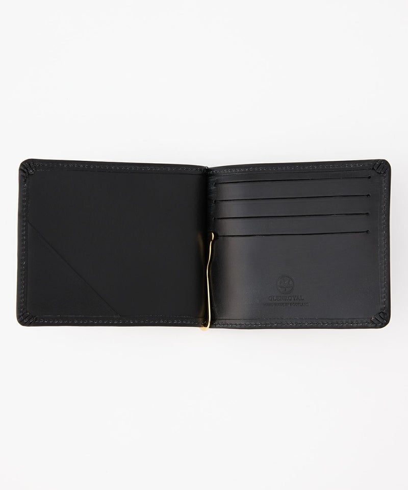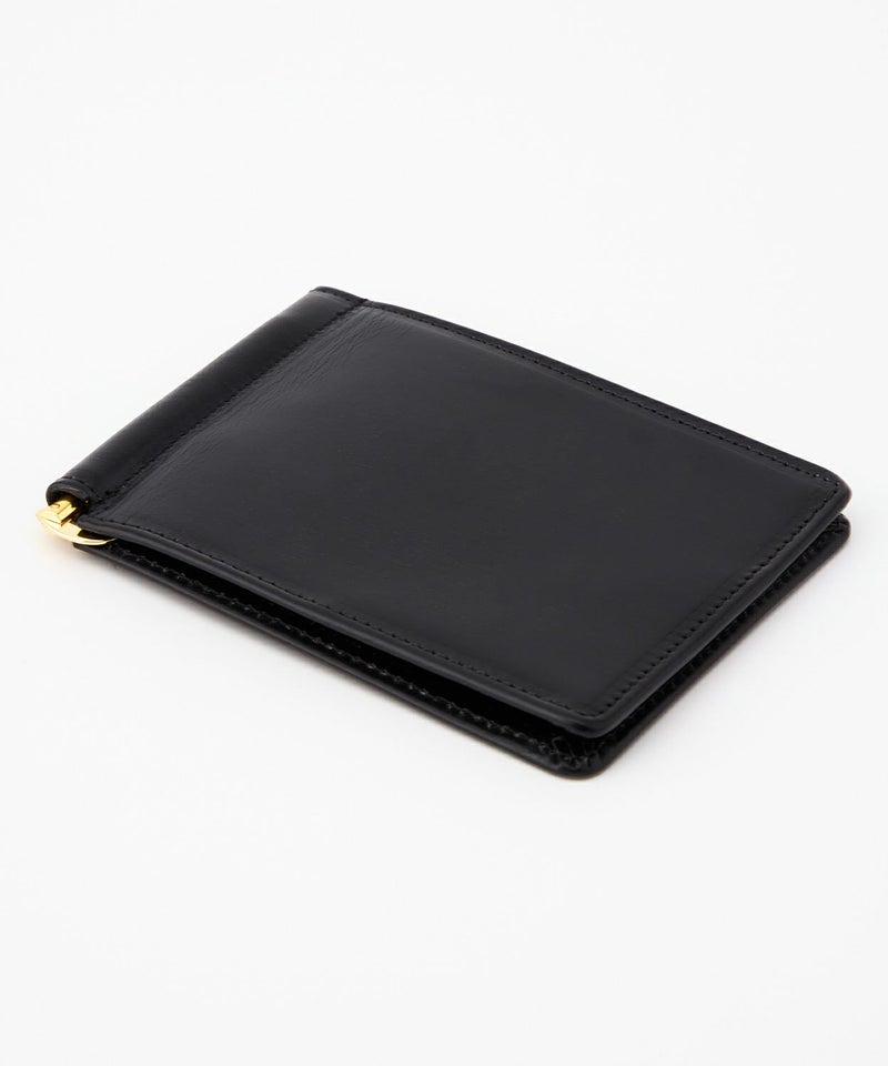 最も薄い財布でポケットなどに入れてもストレスフリー。シンプルな設計でありながら、お会計に必要な最低限の要素は完備。ゴールドのクリップは複数の紙幣をしっかり挟むことができ、なおかつ一枚だけを抜くのに丁度よい絶妙なホールド力。三角形にカットされたレザー部分は、お札を整え収める役割を果たします。