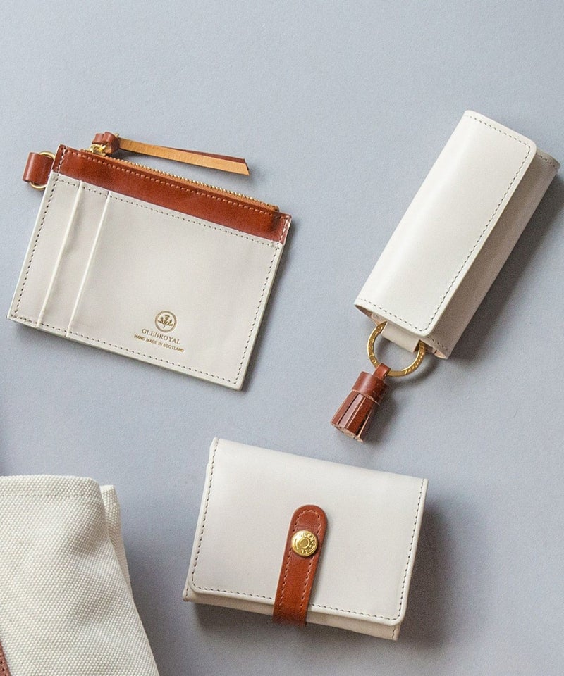 本モデルよりお札の出し入れがしやすい高さにアップデートしました。サイドに取られたマチが大きく開き、小銭やお札、鍵などライフスタイルに合わせてマルチにお使いいただけます。キャッシュレスシーンも広がりを見せているこの頃、注目したい多機能なアイテム。お財布がわりにも使用できるので、荷物も最小限にしぼって持ち歩くことができます。リング付きなのでストラップを付けたり、大き目の鍵は外側につけたりと生活の用途に合わせてカスタムもしやすく、小さいながらも頼りになる逸品です。