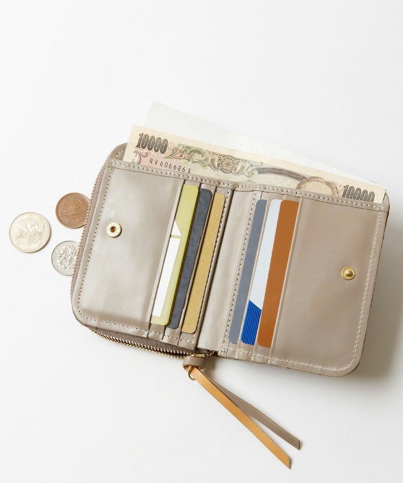 コンパクトな設計ながらもカードポケットが8つ備わっており、収納力は抜群です。マチ付きのコインケースも嬉しいポイント。約9.5cm×11.5cmの手のひらサイズは、小さなカバンでも心配ありません。