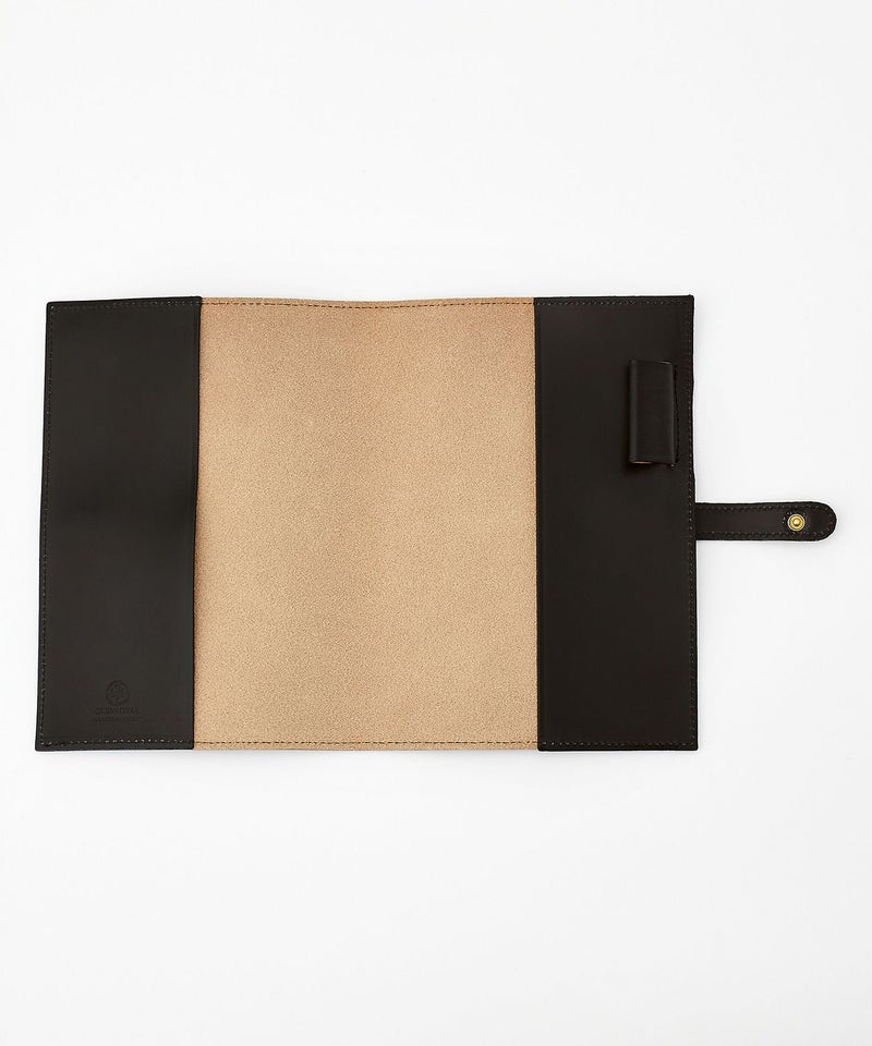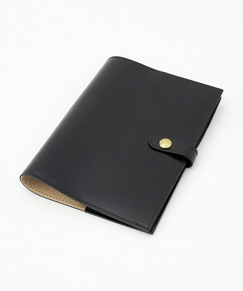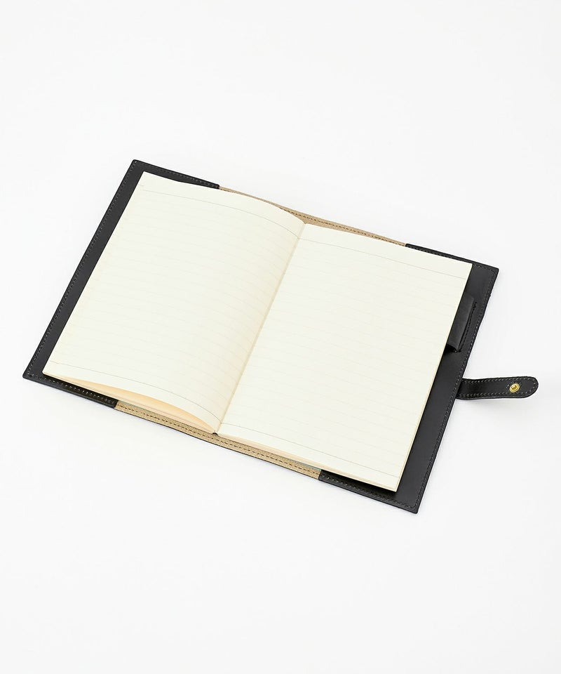 リフィルの表紙と裏表紙を差し込むタイプで、カバーから外れにくく機能性にも優れています。ペンホルダーや、バッグの中で開いてしまわないための留め具が備わっており、留め具はリフィルの厚さに合わせて2段階で調整可能。