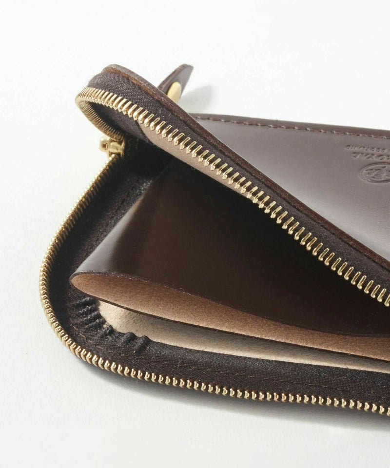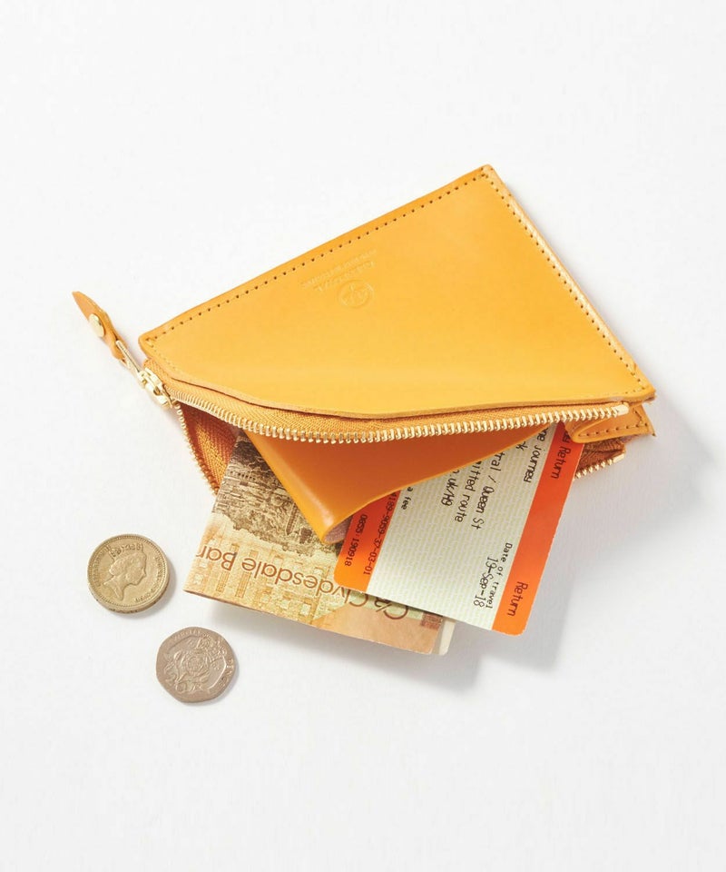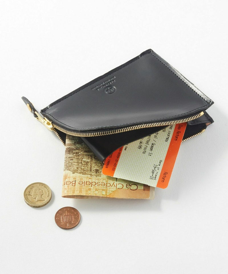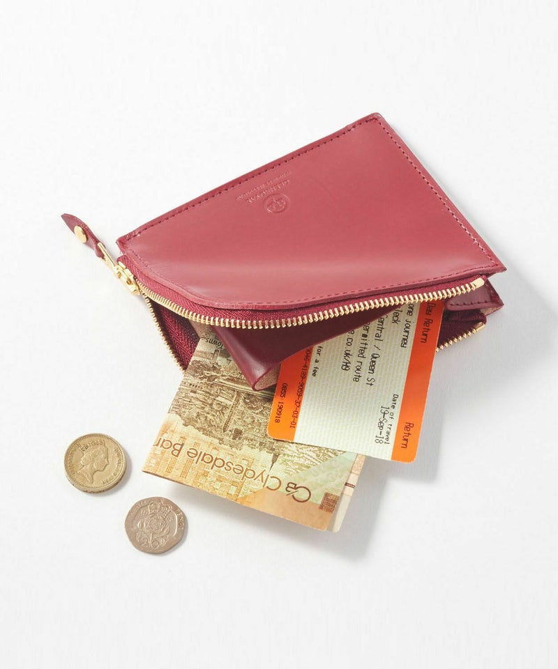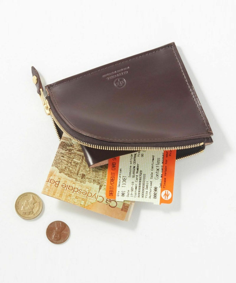 サイドに取られたマチが大きく開き、コインの出し入れもスムーズに。中に仕切りがついているため、カード類や二つ折りにしたお札などの仕分けも可能です。コンパクトなサイズ感のため、クラッチバッグやハンドバッグはもちろん、休日のお出かけにはデニムの後ろポケットにも収めていただけます。