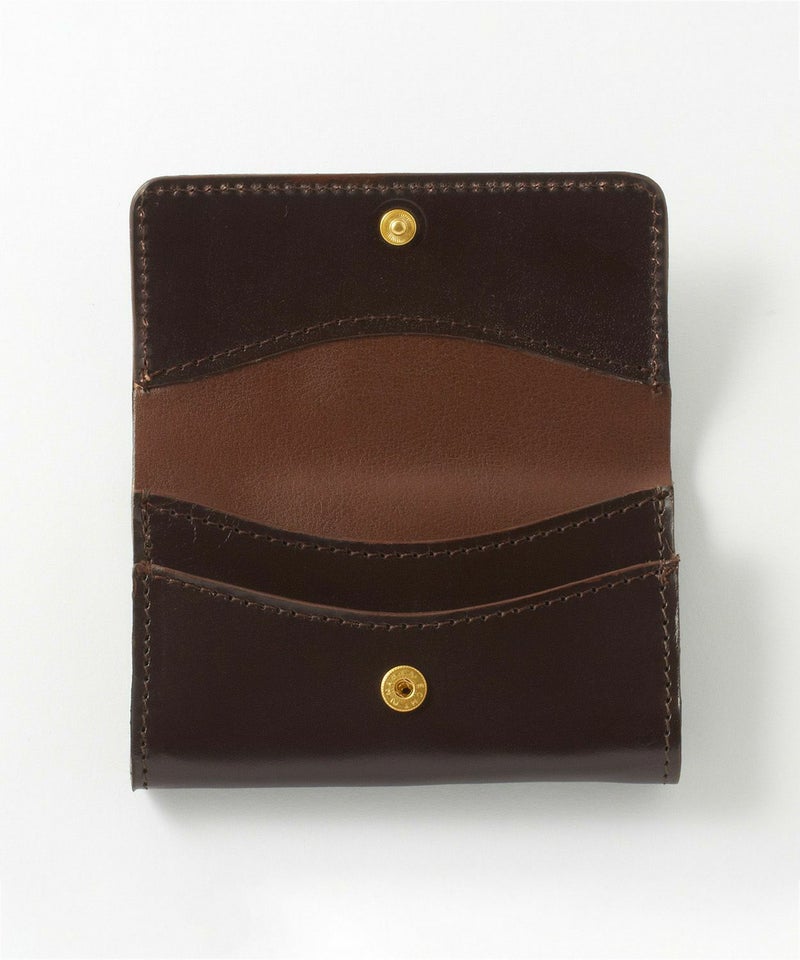 GLENROYALと刻まれた、ゴールドのスナップボタンがアクセントに。ラギッドになりがちなレザープロダクトに優美な印象をプラスしてくれます。また、しっかりとホールドできるので、名刺が落ちる心配もなく安心して使用することができます。