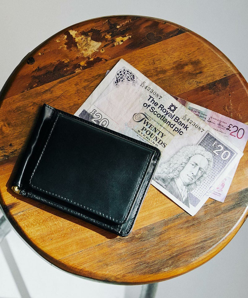 ミニマルなルックスと使い勝手の良さを兼ね備えるマネークリップは、グレンロイヤルの数あるアイテムのなかでも屈指のロングセラーモデル。約1.5cmという薄さを実現しながら、お札、コイン、カード全てを収納可能。薄マチの為、ポケットに入れても洋服のシルエットを崩さずに持ち運びが可能なオン·オフともに活躍してくれます。