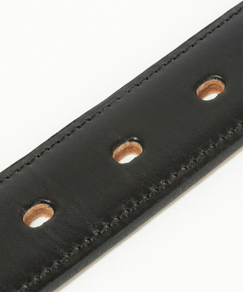 5穴タイプモデルは、穴が1インチ刻みになっており、中央(3つ目)の穴のサイズ=ベルトのサイズです。ご愛用のパンツのサイズと比較してお選びいただくのですが、レザーの厚みもございますため、2インチ大きめのサイズをお選びいただくのをおすすめしています。使い始めは2つ目の穴に通ればそのサイズでOKです。使い込んでいただくうちに、レザーになじみが出て、中央(3つ目)の穴に通るようになります。