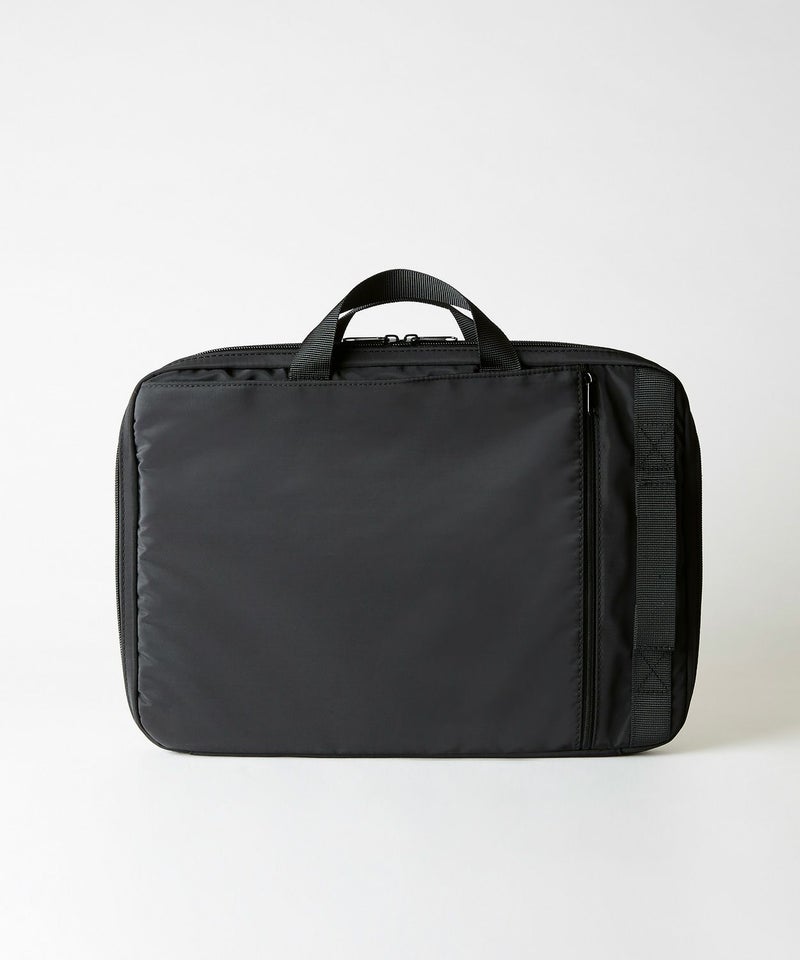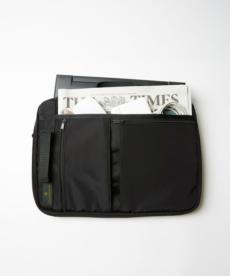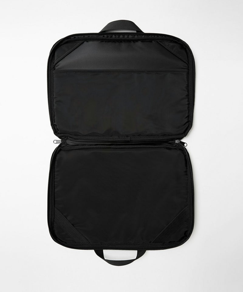 ビジネスバッグと、インナーバッグを2個持ちしてもかさばることがないシンプルなデザイン。開口部はダブルジップで三辺が大きく開きノートパソコンの出し入れ等がスマートにできます。マウスやコードなど周辺機器の収納力も確保。書類等と合わせて持ち運びたい小物類はファスナー付きのポケットに収納することでカバンの中で迷子になりません。