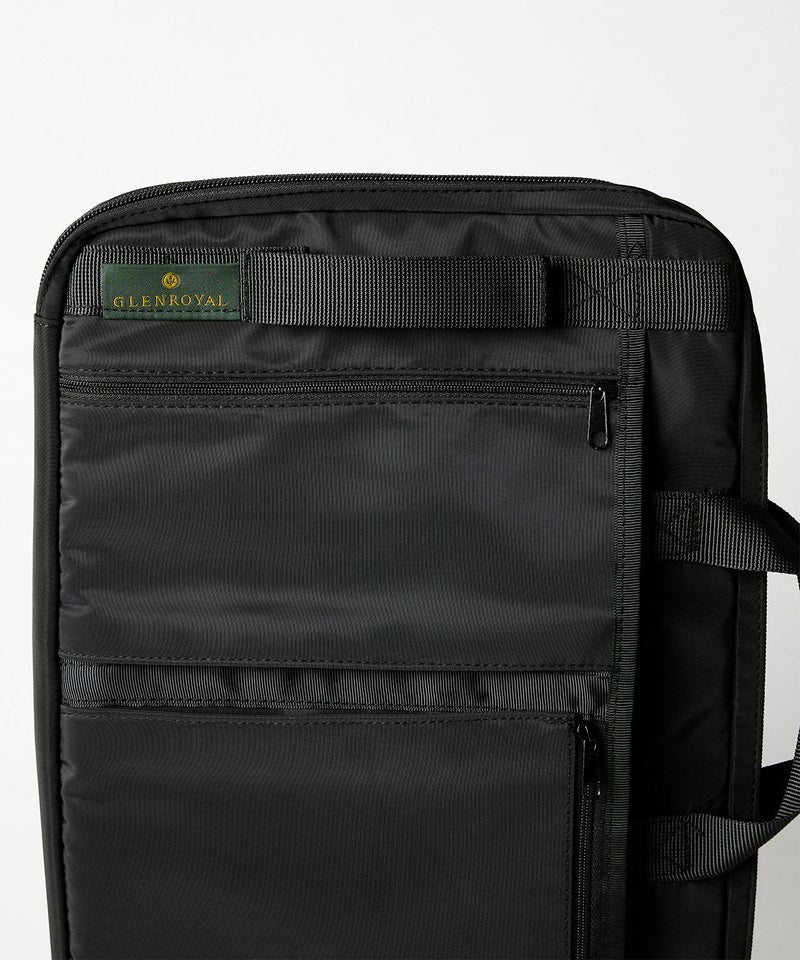 縦・横型のビジネスバッグ等に合わせてお使いいただけるように、外側のポケットにも工夫がされています。また、ホルダーが4か所備わっているためノートパソコンをバッグに固定することができます。出張時や電車・空港などの限られたスペースでもバッグを開閉したまま場所を取ることなくお使いいただけます。
