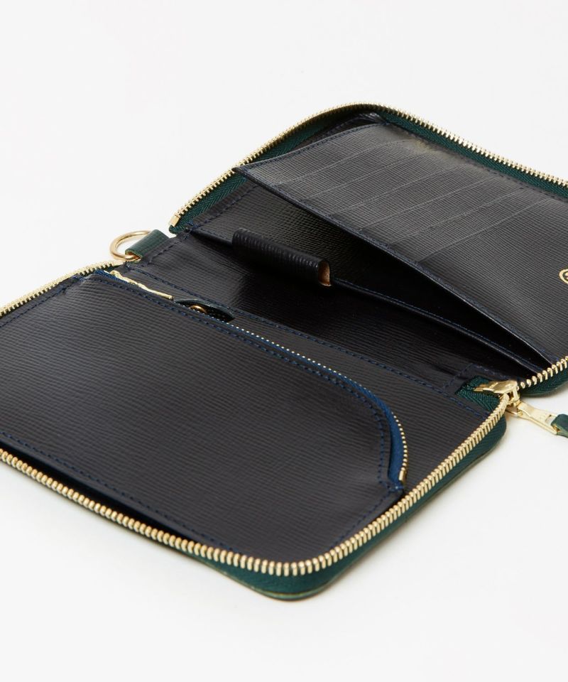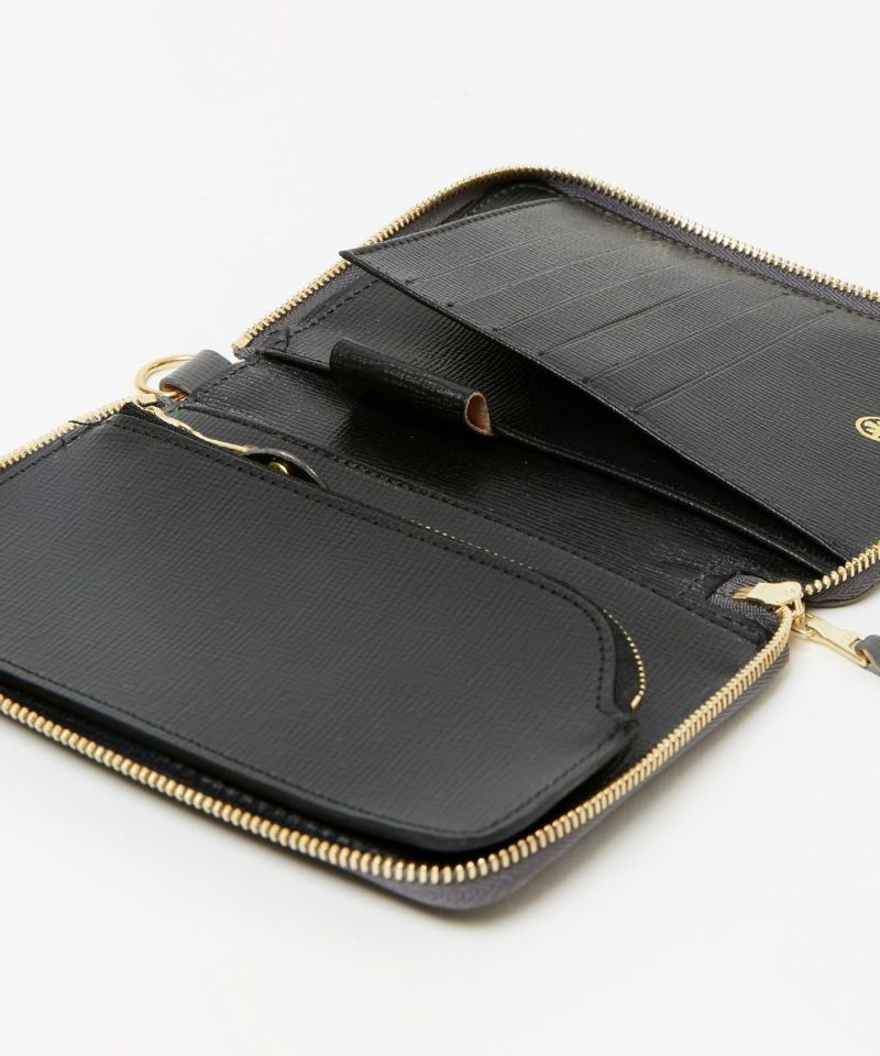 お金やカード類に加えてペンやパスポートも収納可能ながら、手のひらに収まりそうなコンパクトサイズで普段使いとしても十分活用可能。Dリングにウォレットコードを通せば盗難防止にもなり、海外旅行などでも大いに活躍してくれます。