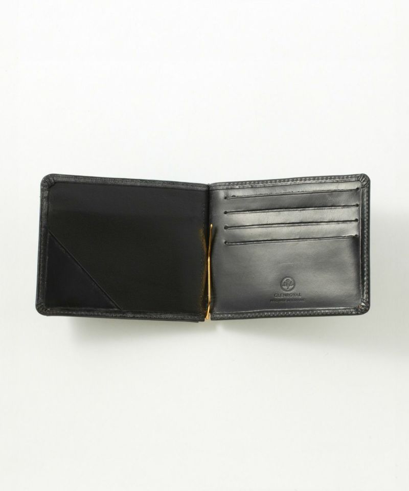 ミニマルなルックスと使い勝手の良さを兼ね備えるマネークリップは、グレンロイヤルの数あるアイテムのなかでも屈指のロングセラーモデル。約1.5cmという薄さを実現しながら、お札、コイン、カード全てを収納可能。薄マチの為、ポケットに入れても洋服のシルエットを崩さずに持ち運びが可能なオン·オフともに活躍してくれます。