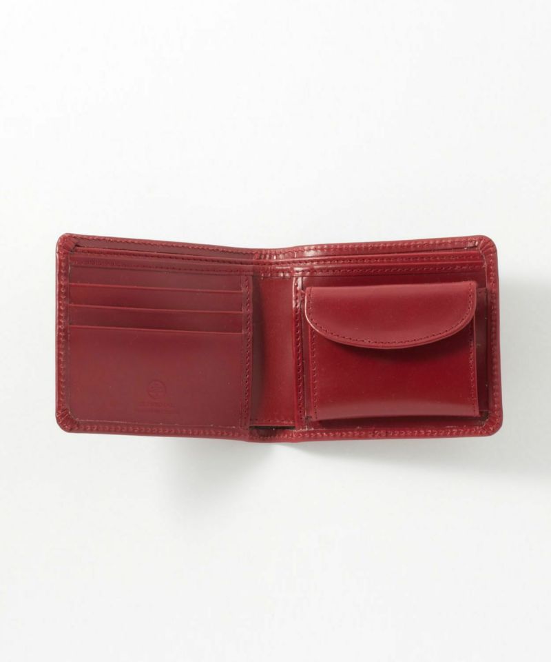一切の無駄がない落ち着きのあるルックスで、オンオフ兼用できるようにあえて薄くスライスしたレザーを採用した上品な仕上がり。内装は、3つのカードポケット、フラップ付きのコインポケット、2室のお札入れがあるとてもシンプルなデザイン。お札入れには仕切りが付いており、領収書とお札を整理しながら使えます。また、スナップボタン式のフラップがついた小銭入れには折りたたみの横マチが付いている為、見た目以上の収納力を備えています。