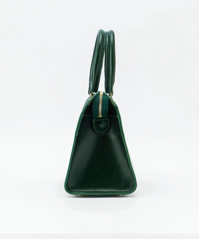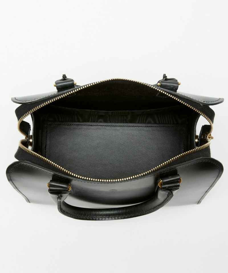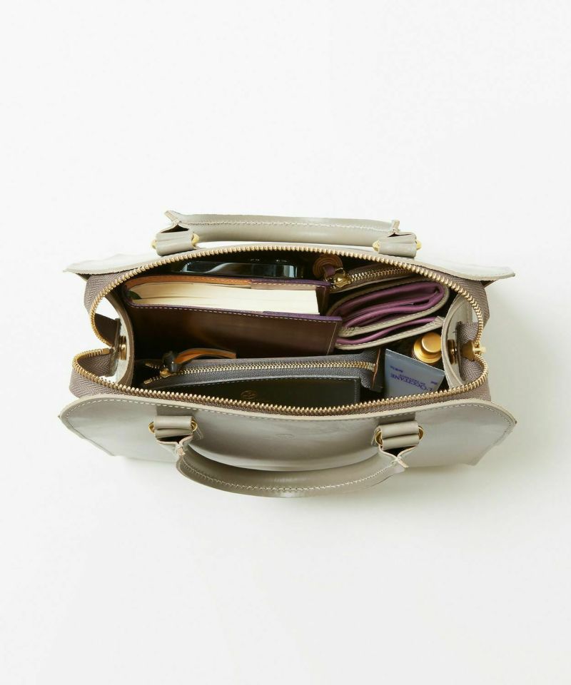 メインコレクションのブリーフバッグのハンドル部分など、グレンロイヤルらしいシンプルで研ぎ澄まされたディテールを女性らしくアップデート。上部の開閉部分はファスナーを使用し、開け閉めし易く開口部が大きく開くため出し入れもスムーズ。また小さくてもマチがしっかりとあるので、お出かけに必要なものは十分入ります。