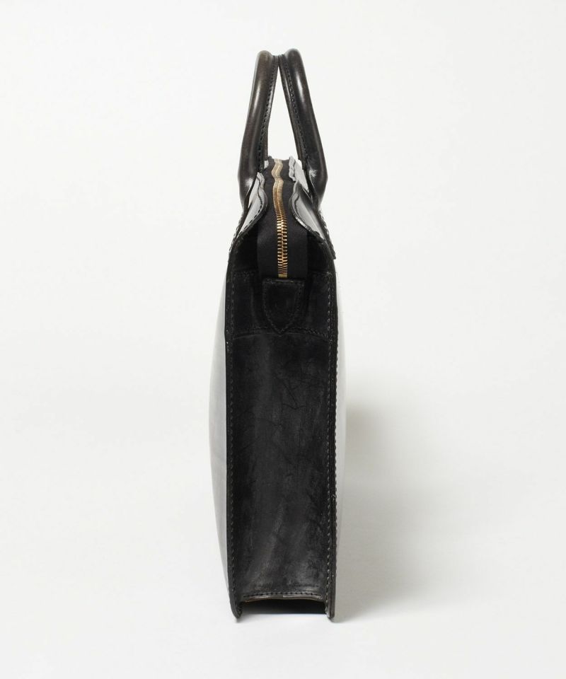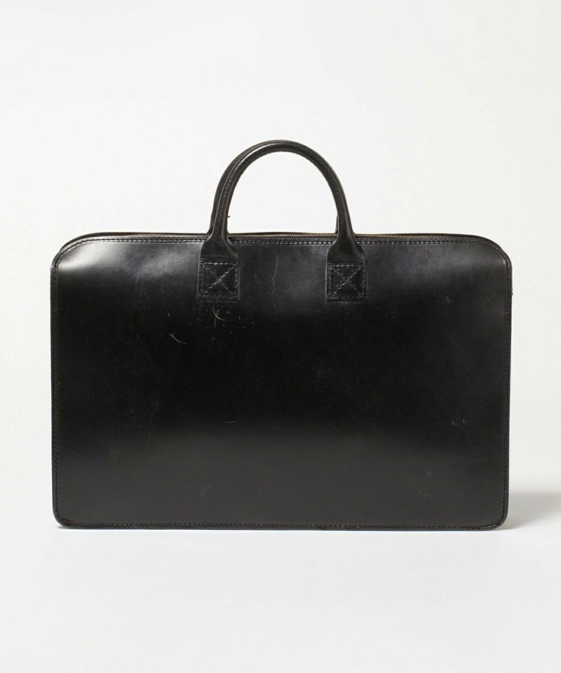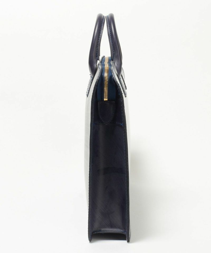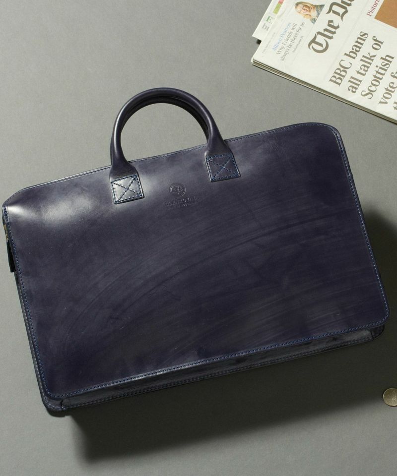 ケースに入れてコンパクトに持ち運びできる撥水性のある高密度ポリエステル生地を使用し、ジップには止水ファスナーを配しているため、レザーバッグの天敵である雨から保護してくれます。