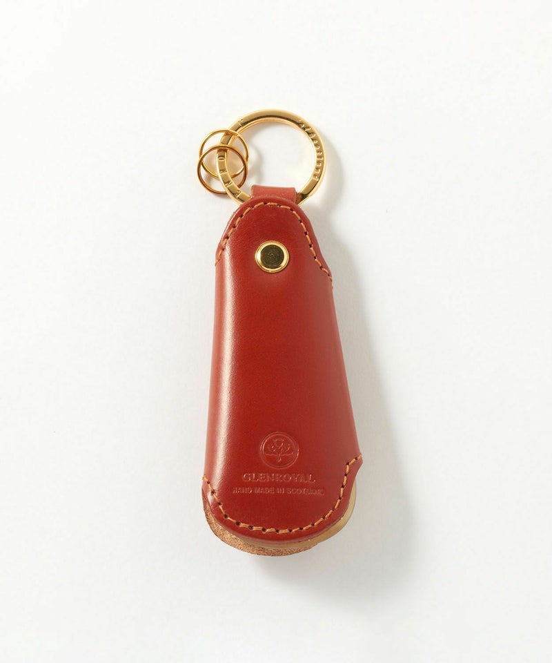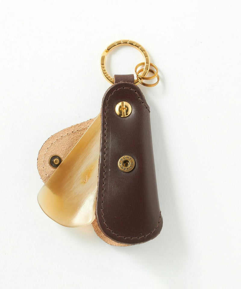 外出先でサッと使うだけで、さり気なく品のある大人の立ち振る舞いを演出できます。そしてグレンロイヤルのシューホーンはコンパクトなサイズも魅力的で、気軽に持ち歩く事が可能です。ホーンを覆う伝統のブライドルレザーに金のスナップボタンの組み合わせという、エレガンスの宿る贅沢で深みのある仕上がり。日々変わっていく革の表情も楽しめる逸品なのです。さらに、ホーン本体は水牛の角を用いることで、他にはない上質で温かみのある雰囲気も生みだしています。