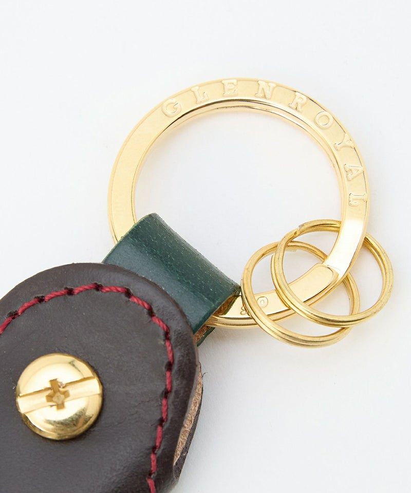 ・ブランド名が刻印されたゴールドのリング。この部分をパンツのベルトループにかけて持ち歩くことも可能。さらにその先にはキーリングを2つ配備することで機能性を高めています。