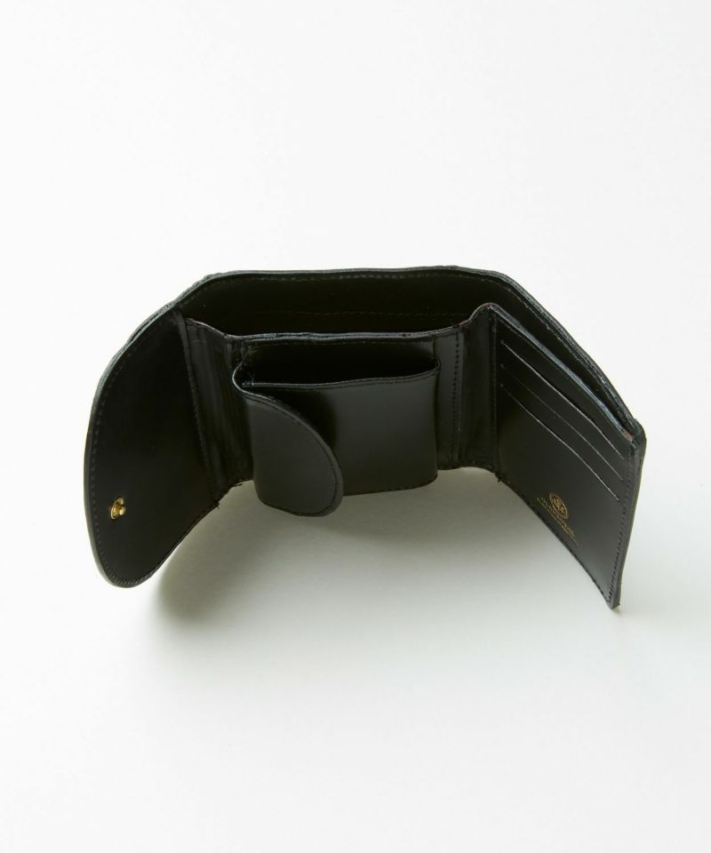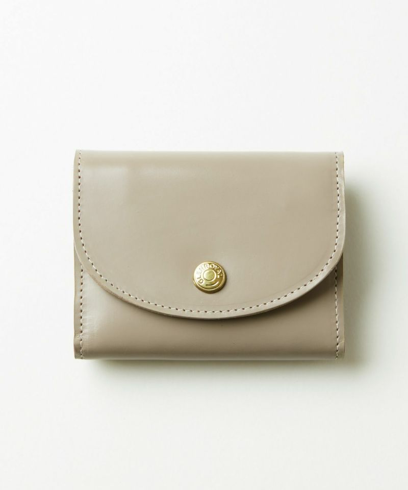 バッグ内で開いてしまうのを防いでくれる、フラップ付きの三つ折り財布。