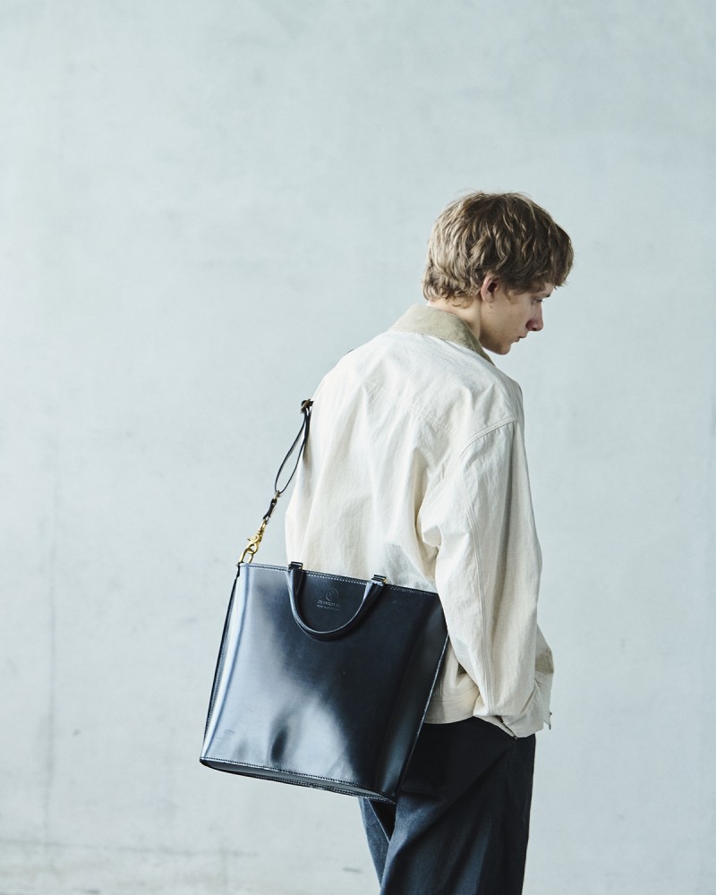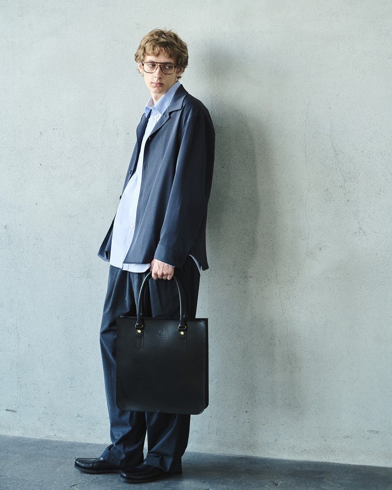 A4サイズがすっきり収まる縦型トートバッグは、ビジネスからカジュアルまで幅広い装いに寄り添う2wayデザイン。上質なブライドルレザーを贅沢に使用した上品な佇まいは、軽やかさと高級感を両立し、オンオフ問わず日常の相棒として活躍します。肩掛けも可能なパッド付きショルダーストラップや、さっと置いても自立するマチ、トップのジップ弁など、使いやすさを考慮した細部のデザインも魅力です。スーツにはきちんと感を添え、デニムスタイルには程よいアクセントに。使い込むほどに深みを増すブライドルレザーの風合いを楽しみながら、長く愛用できる一品です。