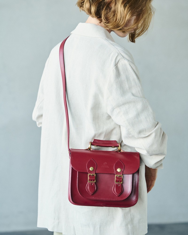 コンパクトながら存在感のあるサッチェルバッグは、日常の装いに自然に馴染む上品な佇まい。ブライドルレザーの質感とクラシカルなデザインが、カジュアルスタイルにもきちんと感のある装いにも寄り添います。豊富なカラーバリエーションも魅力で、ご自身のワードローブに合わせて選べるのも嬉しいポイント。肩に掛けるだけでコーディネートに程よいアクセントを加え、オンオフ問わず活躍。ミニショルダーやサコッシュが定着するカジュアルシーンの中でも、トラディショナルな雰囲気を持つ9インチのサッチェルは、男性からの支持も増えている、長く愛せる相棒のようなバッグです。
