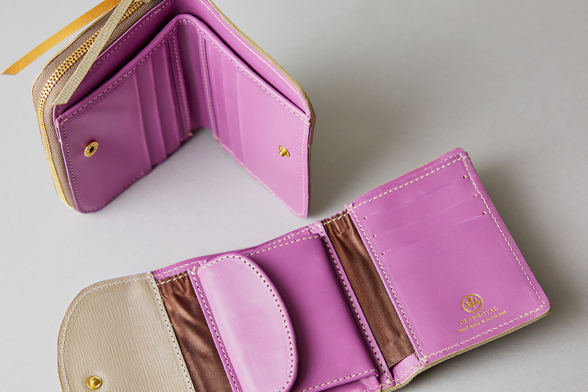 柔らかなトープを表に、内側は女性らしいバイオレットを組み合わせた上品な配色。落ち着いたトープの柔らかさとバイオレットの遊び心が手元に華やかさを添え、日常に自然に溶け込みます。