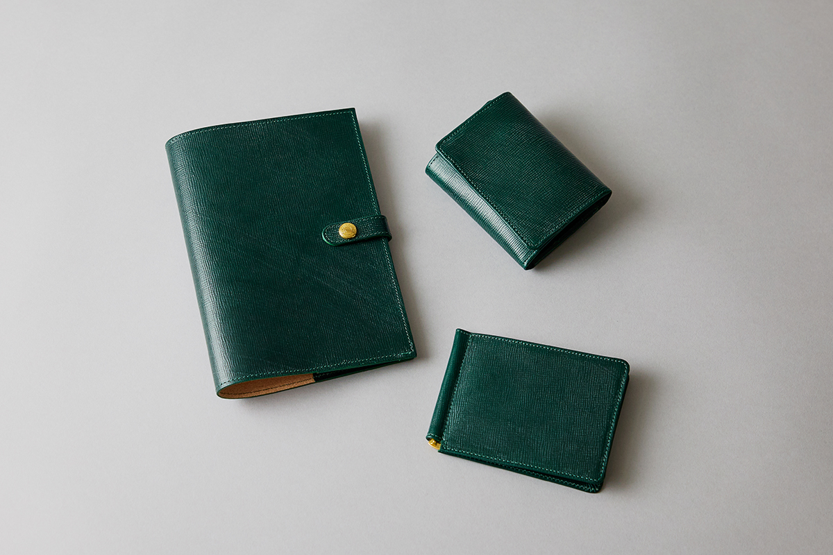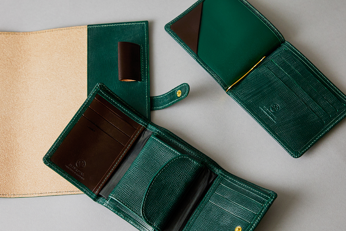 メインカラーには、レイクランドブライドルレザーのボトルグリーンを使用。スムースレザーのグリーンよりも深みがあり、組み合わせには人気の「シガー」を採用。落ち着きと柔らかさを併せ持つ配色で、静かなアクセントを添えます。