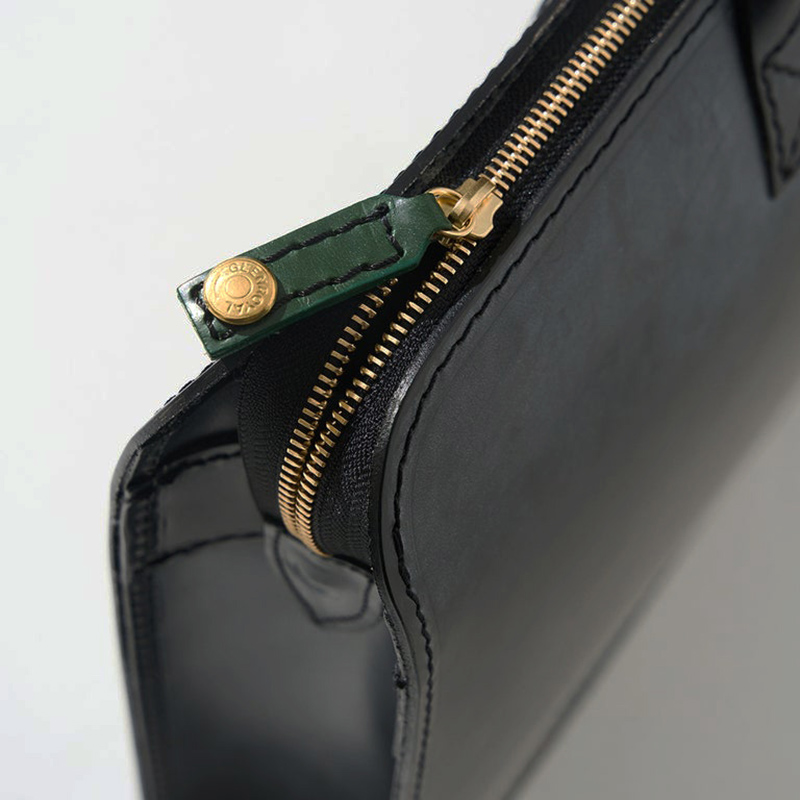 バッグの中でもかさばりにくい程よいサイズ感のペンケース。開閉しやすいジップ付きで、置いた際に自立する使い勝手の良い仕様です。ブライドルレザーならではの滑らかで心地よい質感も魅力。使用頻度の高いステーショナリーだからこそ、上質な素材と佇まいにこだわりたいもの。何気ないビジネスシーンにも品のある印象を添えてくれます。ブライドルレザー特有の経年変化を楽しみながら、長くご愛用いただけるアイテムです。